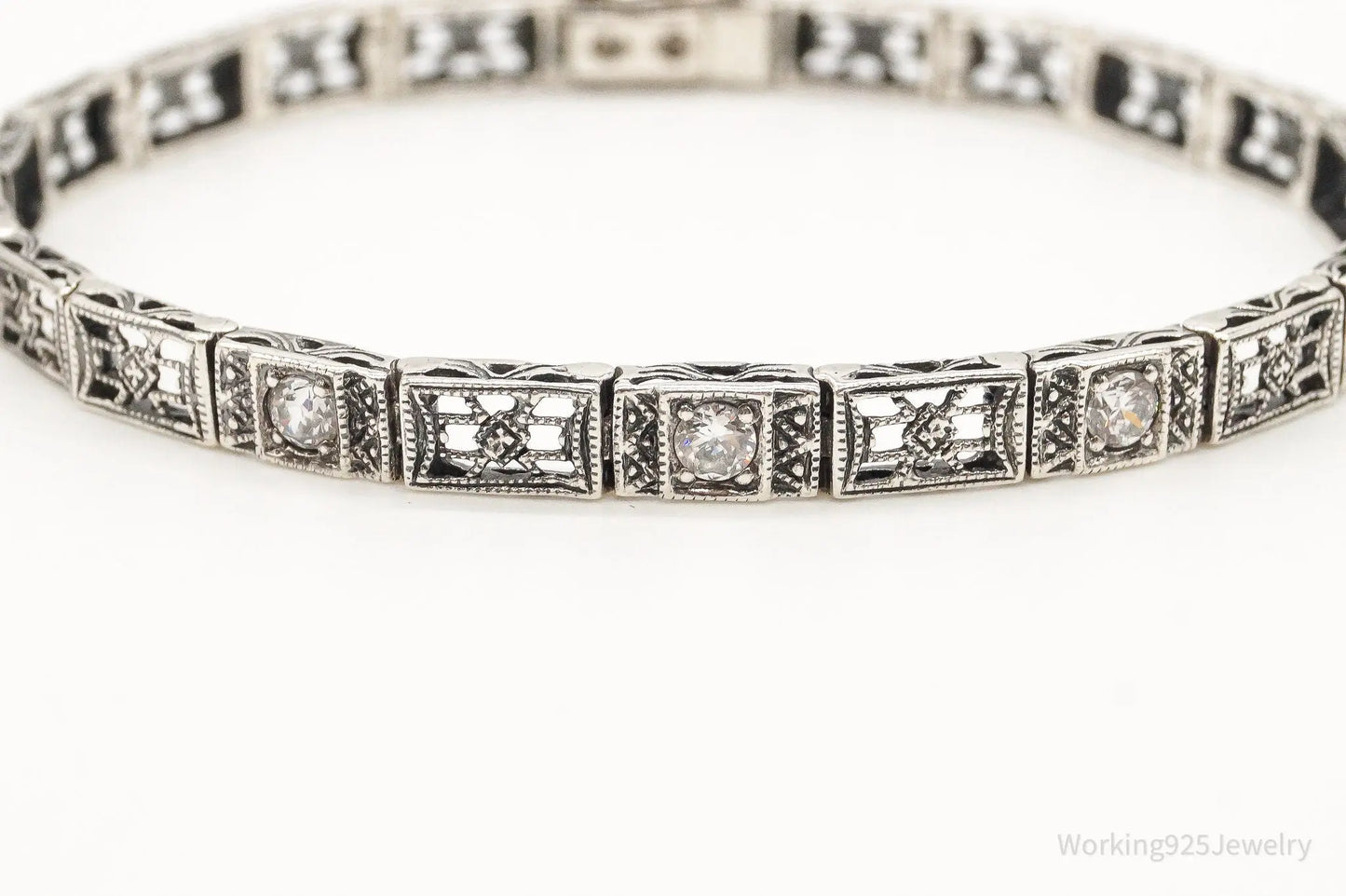 Vintage Cubic Zirconia Art Deco Sterling Silver Bracelet Plush Fashion Hub