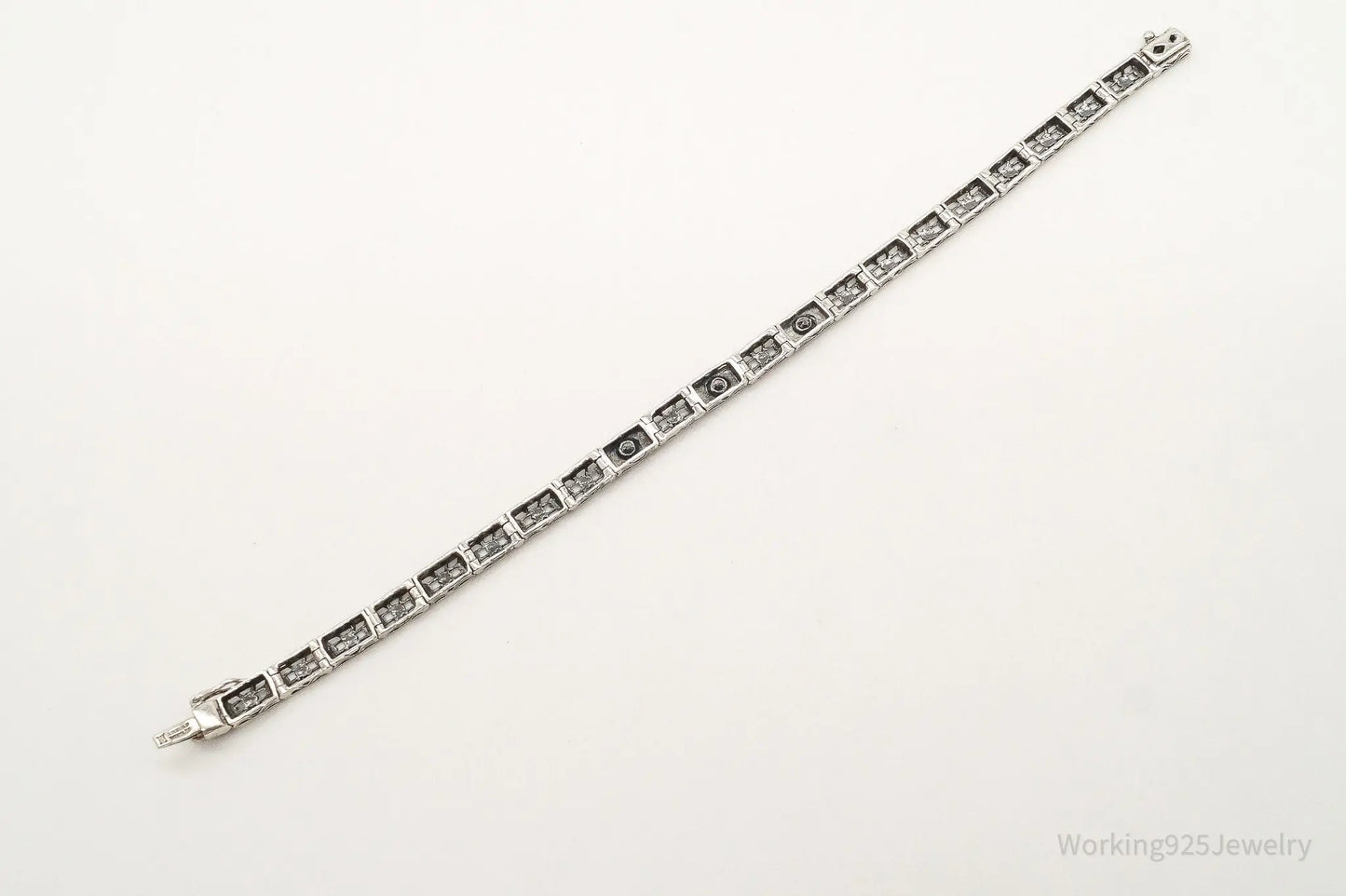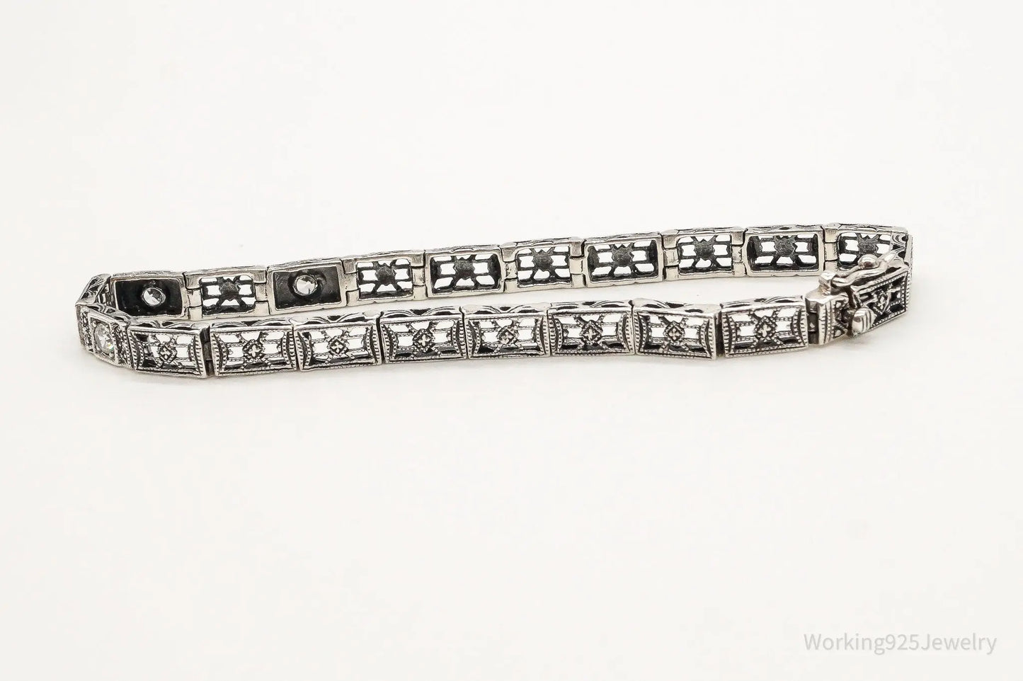Vintage Cubic Zirconia Art Deco Sterling Silver Bracelet