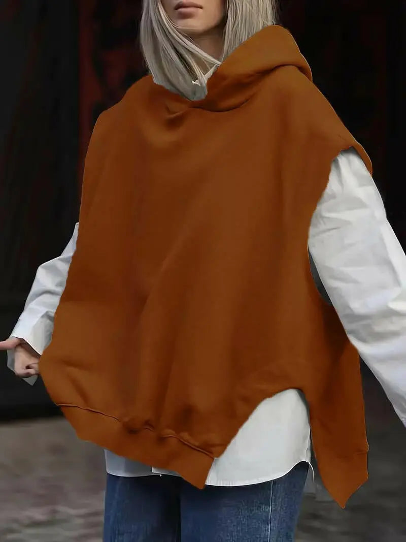 Women's Solid Color Style Loose Sleeveless Hooded Jacket Sweater - Plush Fashion Hub