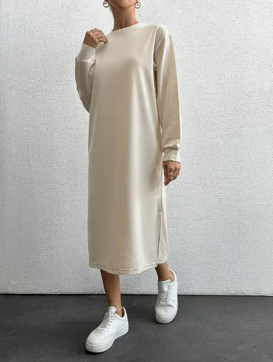 Cotton Solid Split Hem Sweatshirt Dress - Plush Fashion Hub