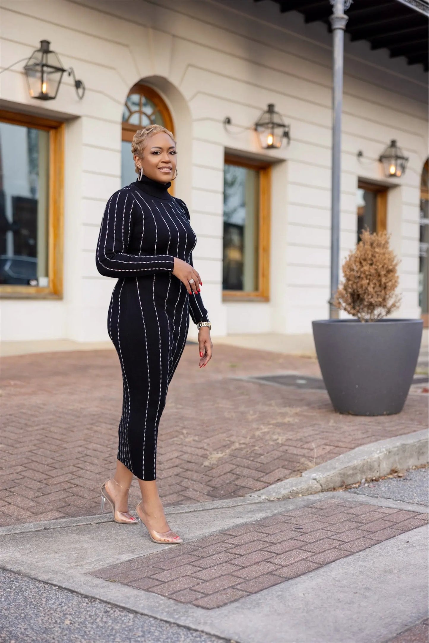 Black Sweater Dress with Embellishments Plush Fashion Hub
