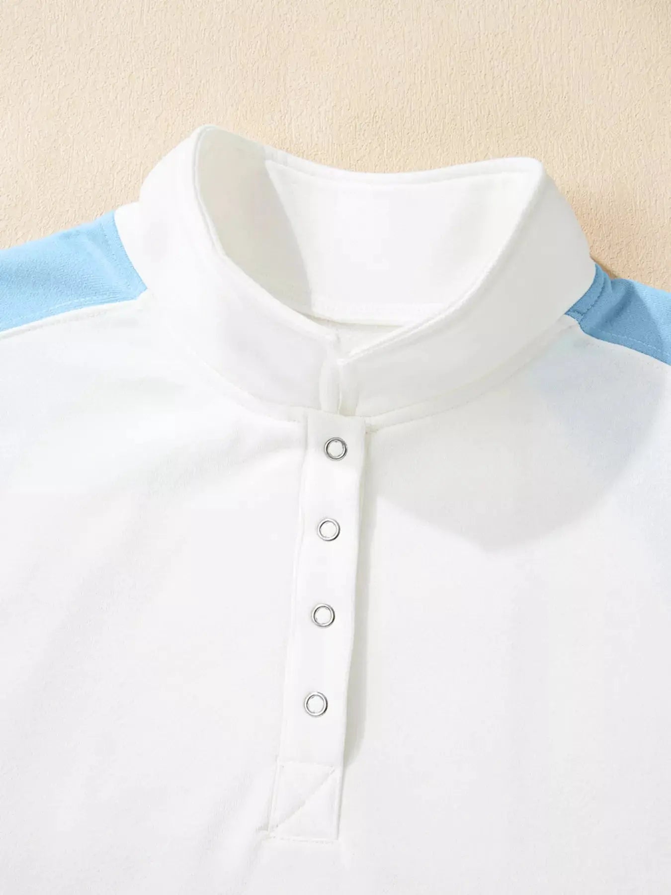 Color Block Snap Buttons Sweatshirt - Plush Fashion Hub