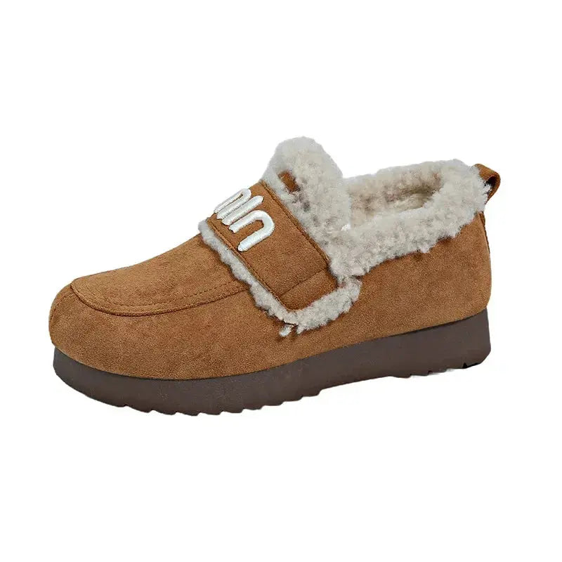 Faux Fur Suede Round Toe Slip-Ons - Plush Fashion Hub