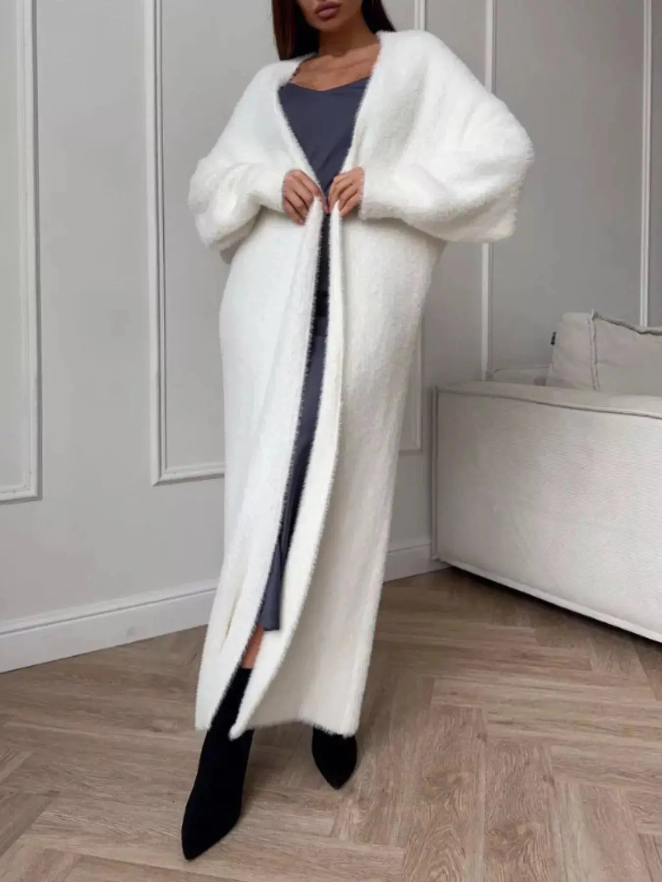 Fuzzy Open Front Longline Cardigan - Plush Fashion Hub