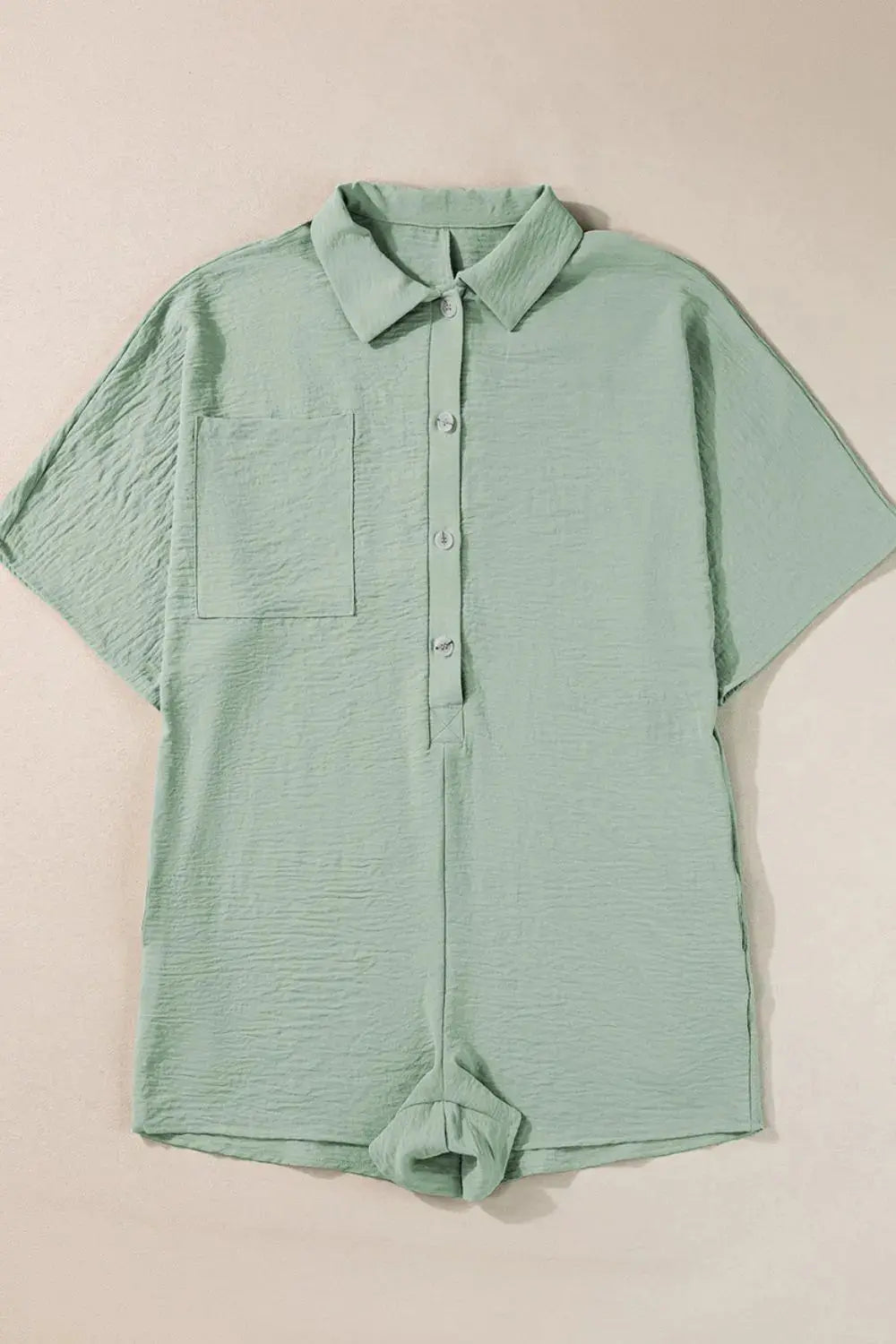 Half Button Collared Neck Romper - Plush Fashion Hub