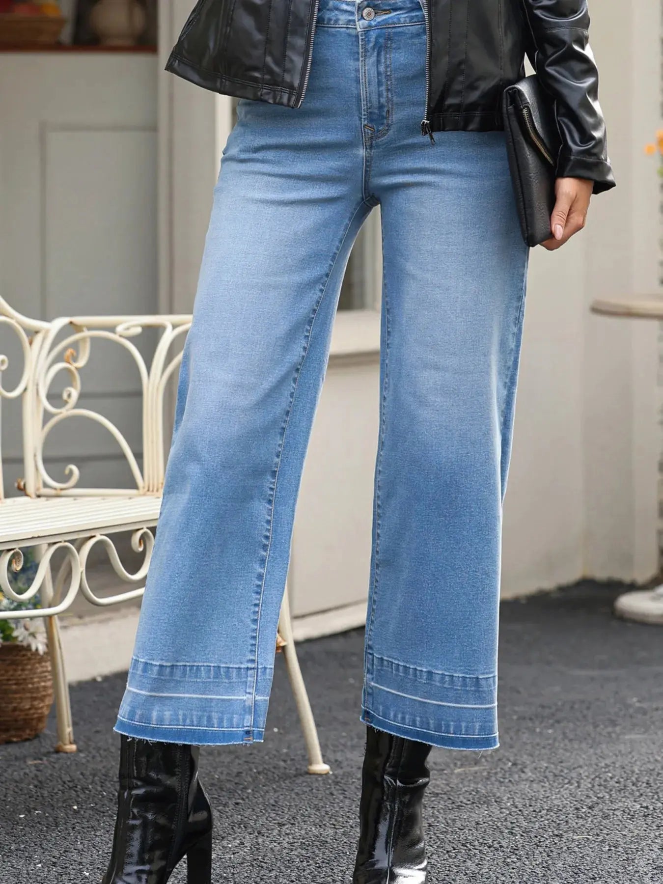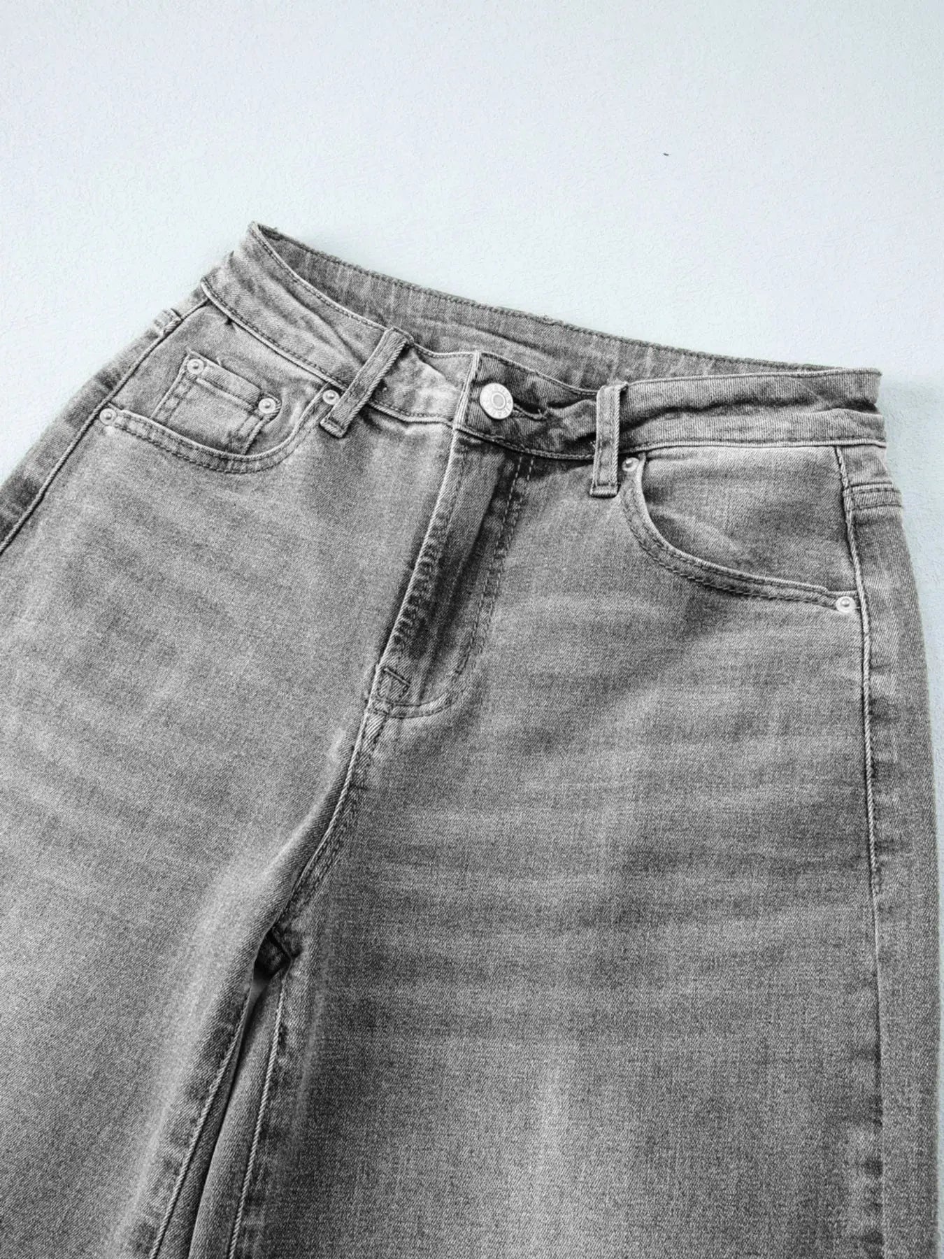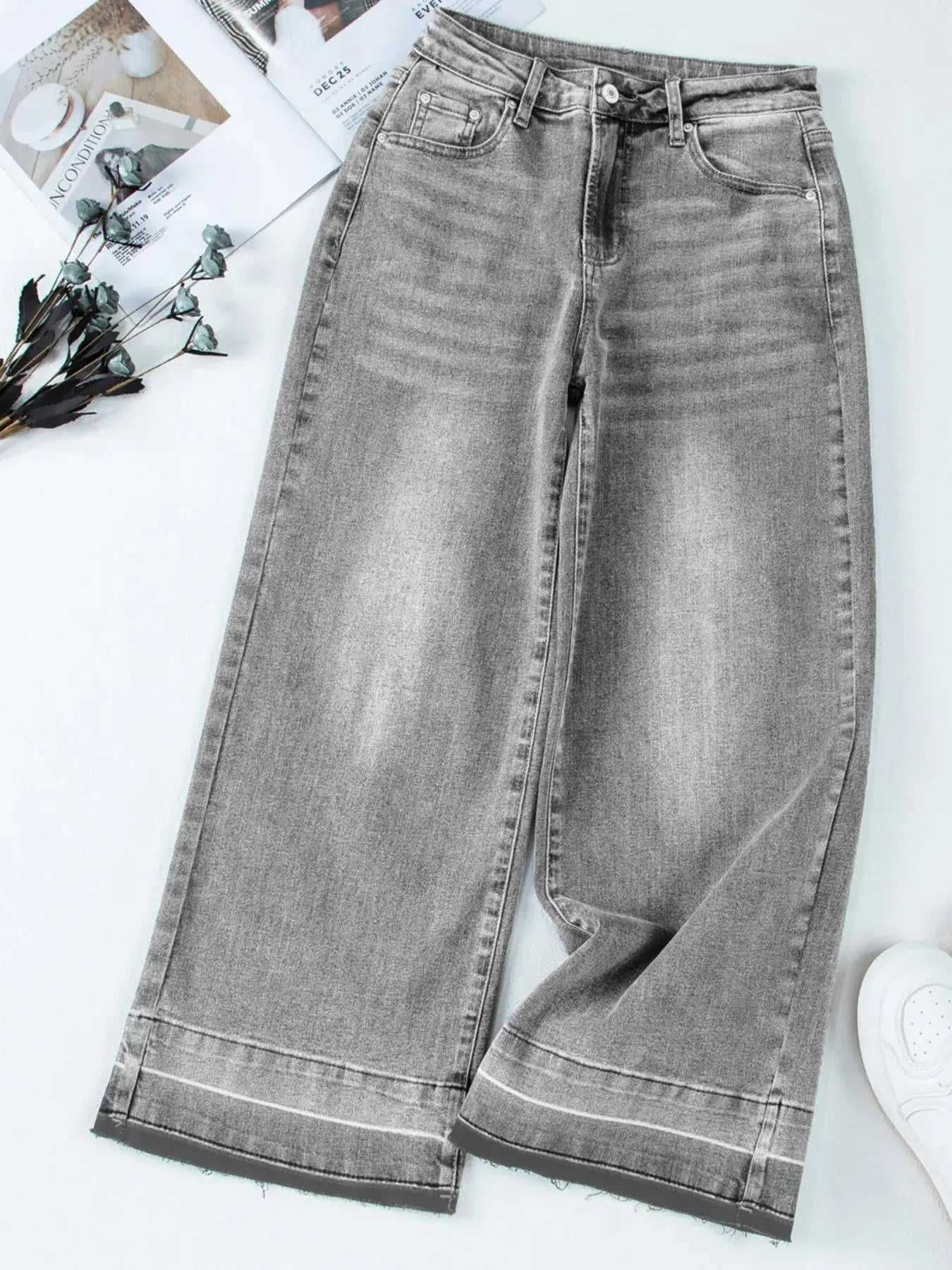High Waist Wide Leg Washed Jeans