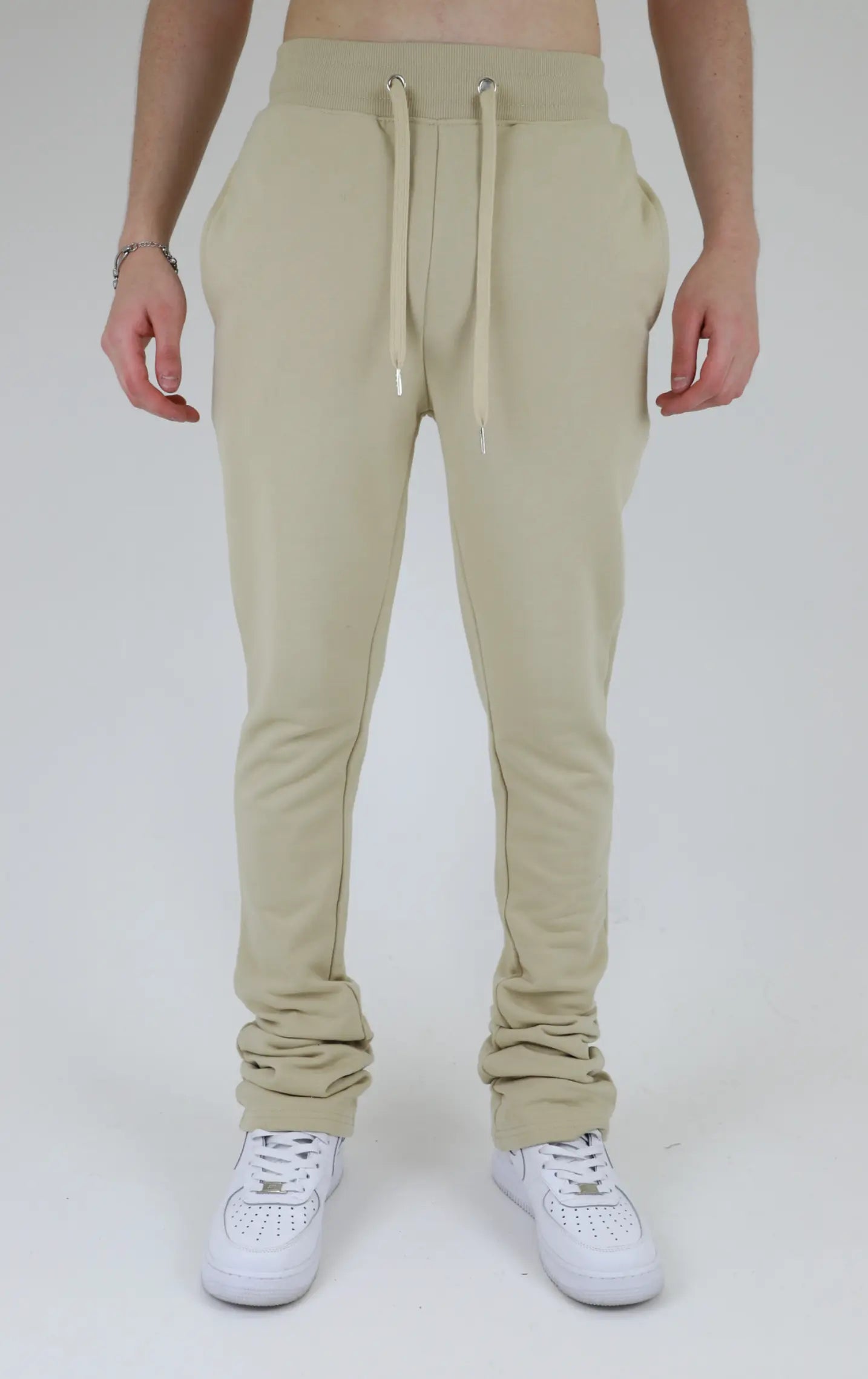 Sweatpants featuring an elastic waistband with adjustable drawstrings, back and side pockets.