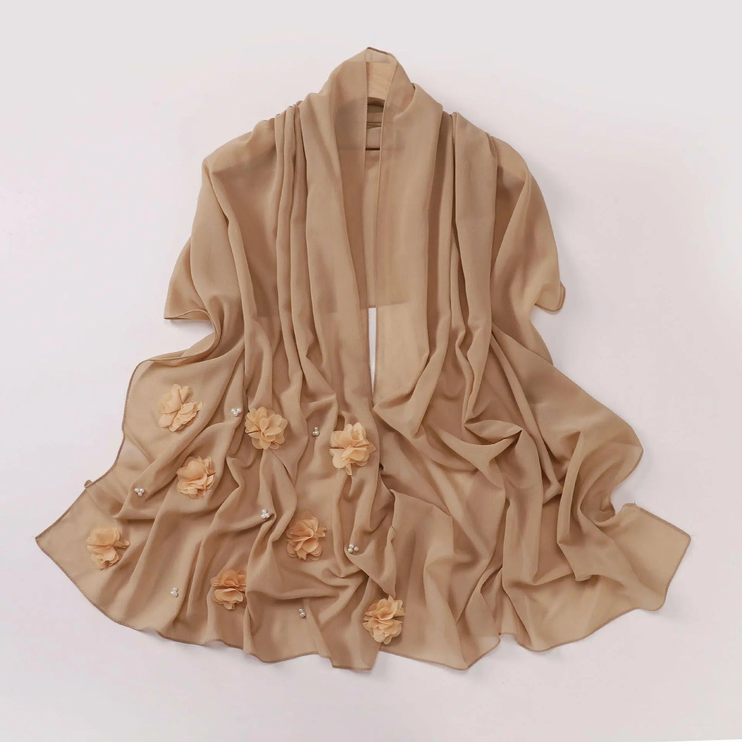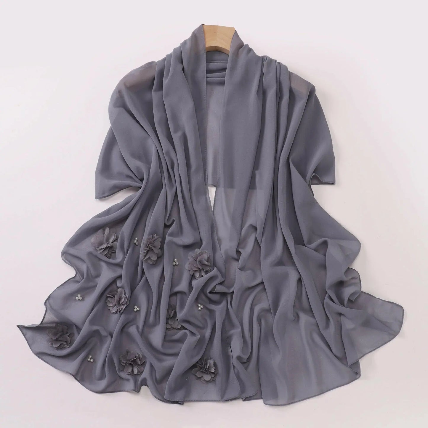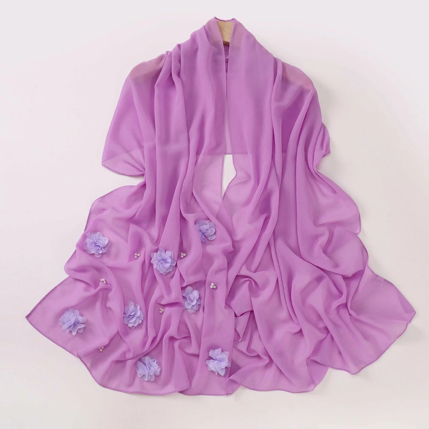 Pearl Chiffon Handmade Sticky Flower Beaded Scarf - Plush Fashion Hub
