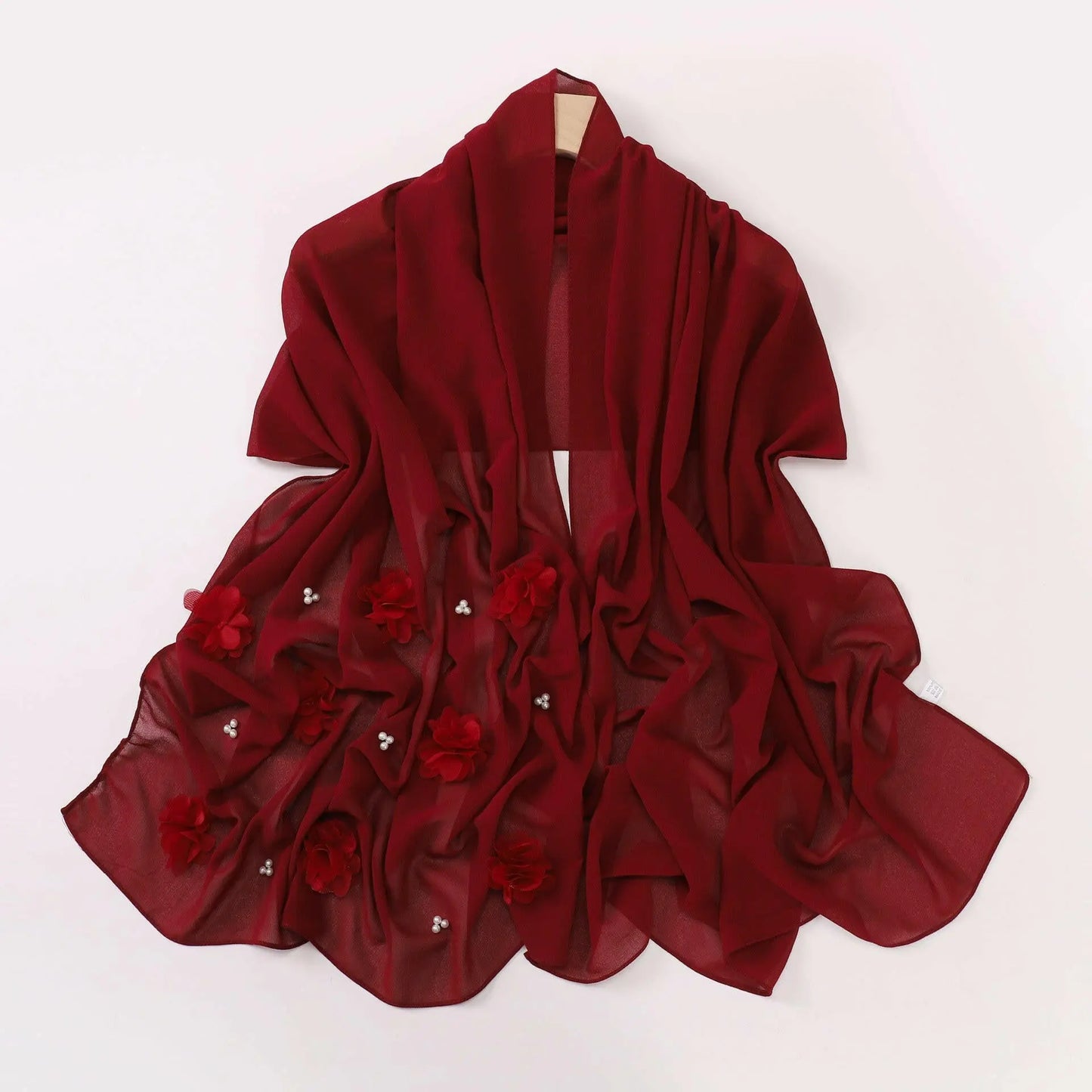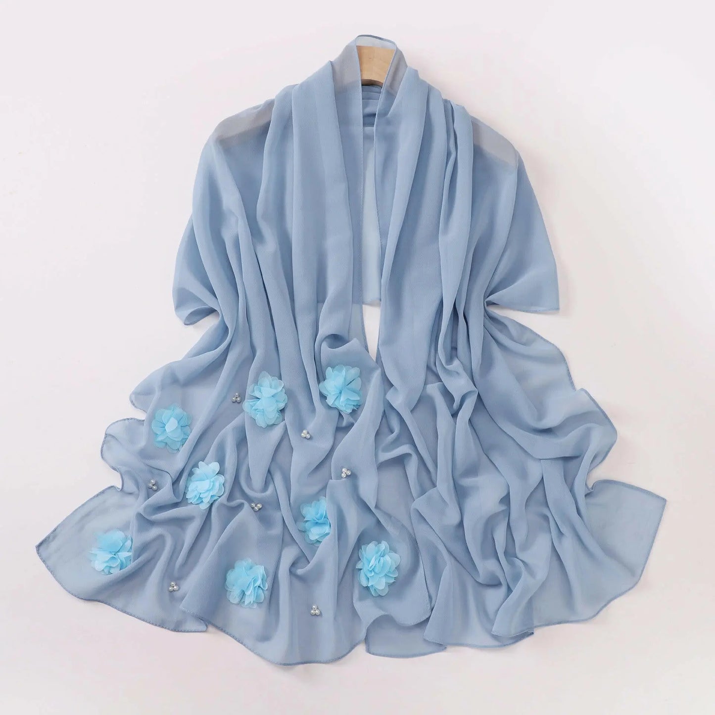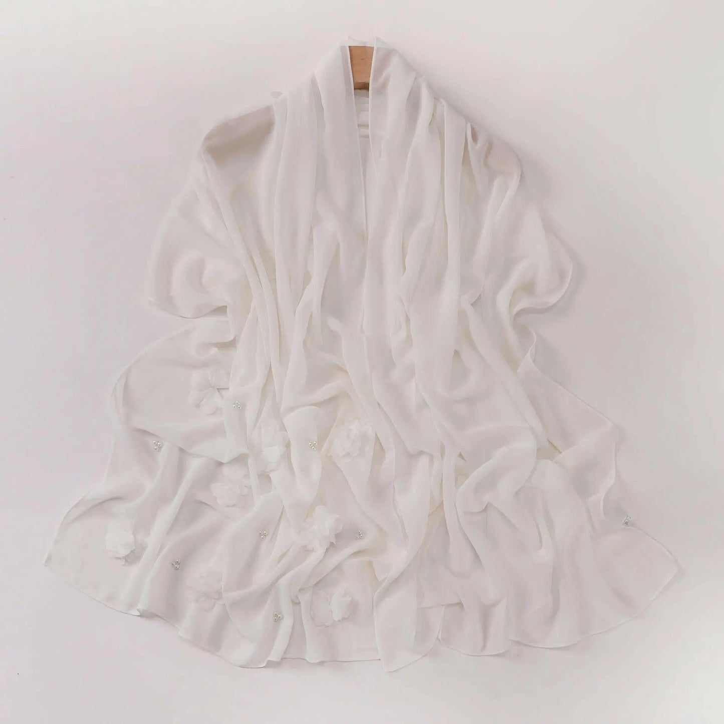 Pearl Chiffon Handmade Sticky Flower Beaded Scarf - Plush Fashion Hub
