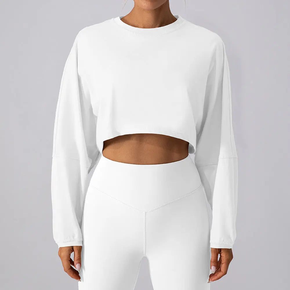 Round Neck Short Sports Yoga Long Sleeve set - Plush Fashion Hub