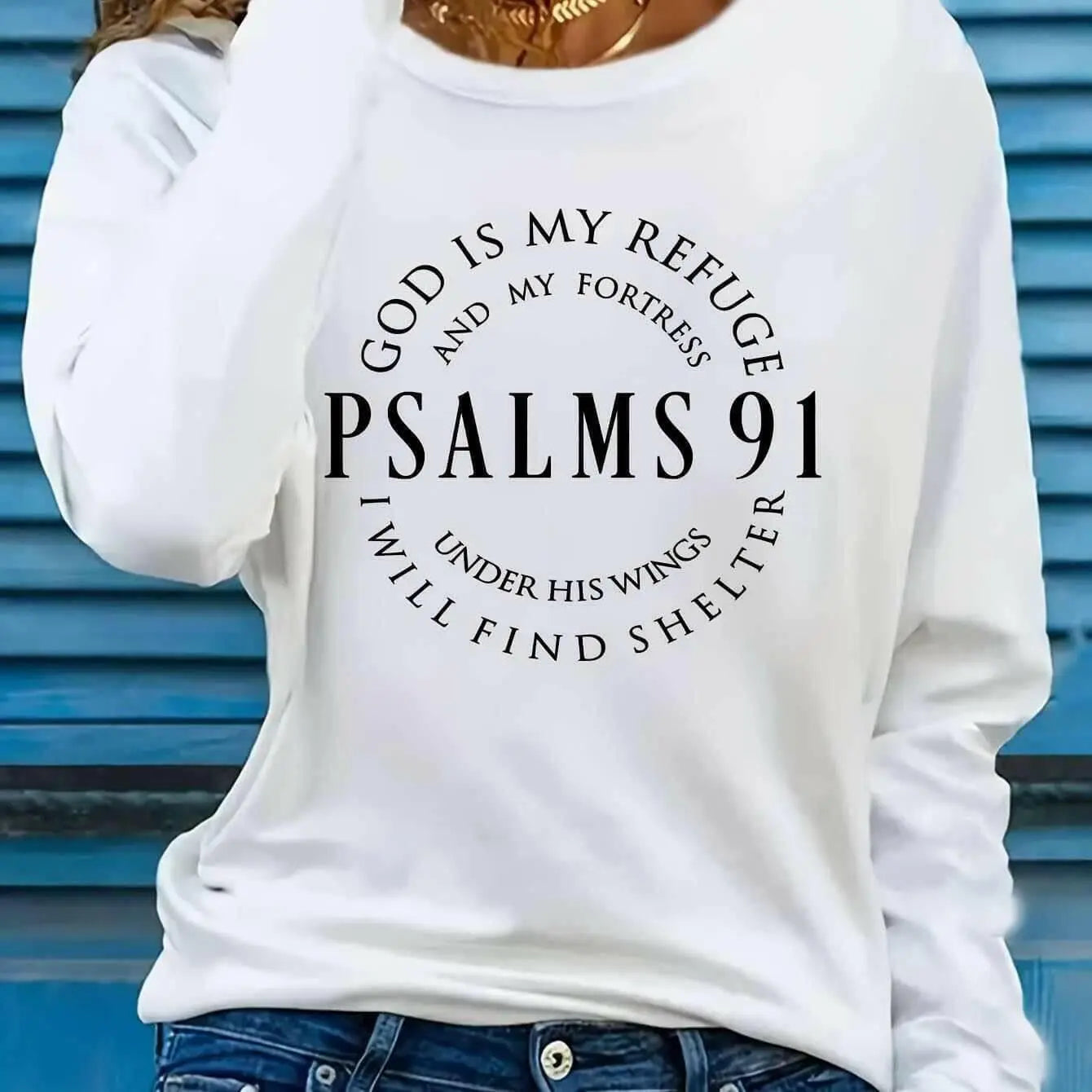 Crafted from premium 100% polyester, this long sleeve T-shirt offers luxuriously soft, breathable fabric that pampers the skin while ensuring durability. Featuring a relaxed fit and classic crew neck, it delivers effortless ease for all-day comfort. The beautifully printed Psalms 91 verse is not just decoration—it’s a powerful reminder of hope and protection that resonates deeply with both wearer and observer.